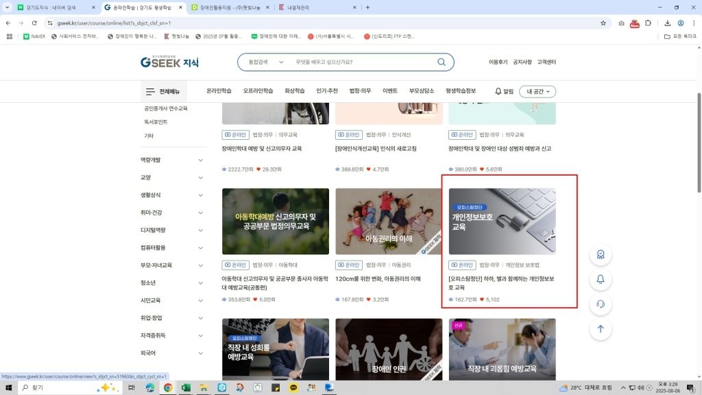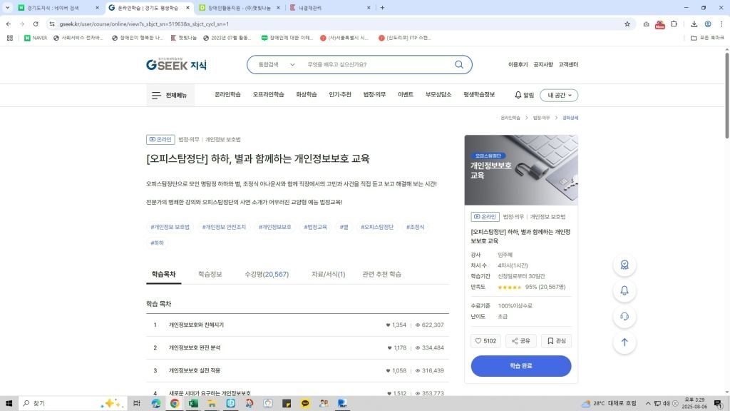8월 법정의무 교육은 2025년 오피스탐정단 하하 별과 함께하는 개인정보보호교육 입니다.