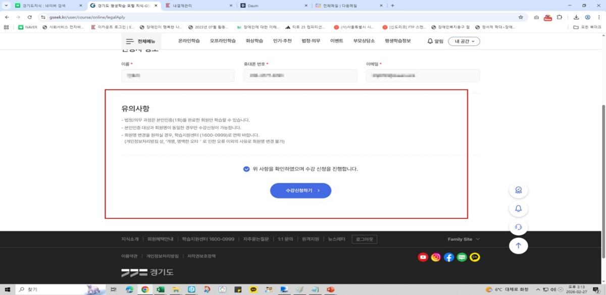 위 수강은 핸드폰 온라인수강도 가능하오니 수강완료 하신 후 캡쳐본은 기관 전화로 문자 넣어주시면 됩니다!