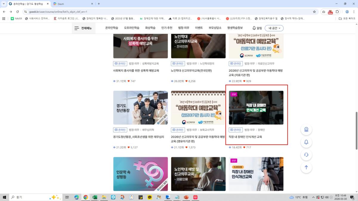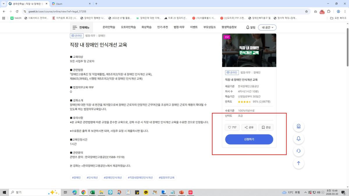 2026년 2차 법정의무교육(직장 내 장애인 인식개선 교육) 이수 방법 안내