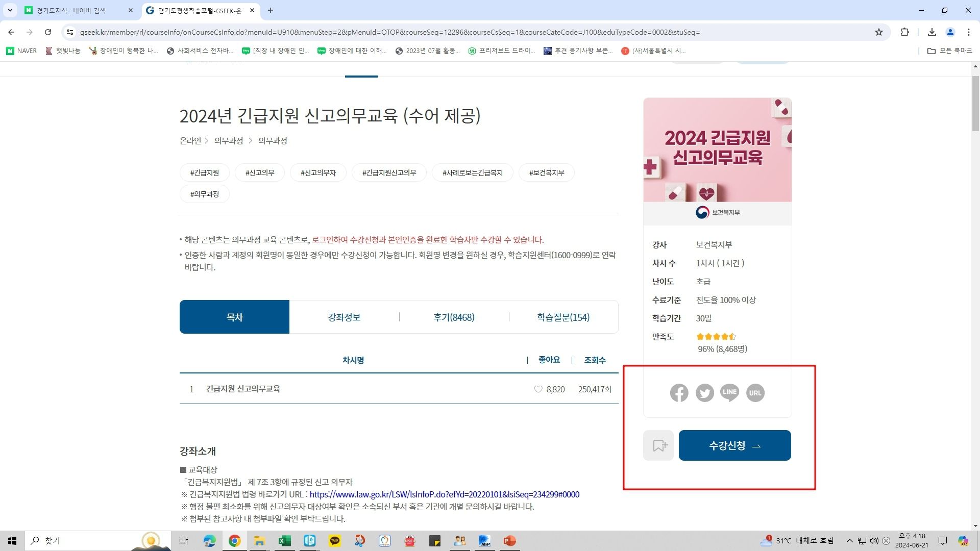 법정의무교육 (긴급지원 신고의무교육) 이수방법 안내
